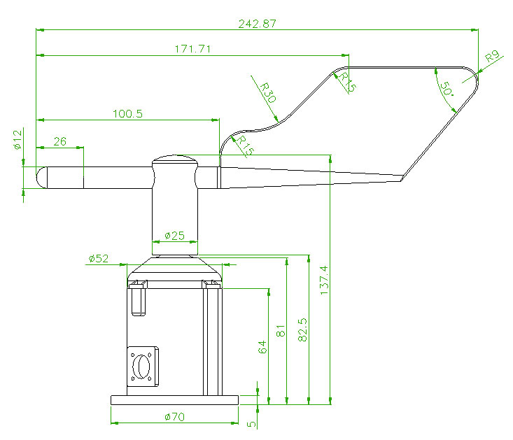 采用法蘭安裝方法,螺紋法蘭連接使風(fēng)向傳感器下部管件牢牢固定在法蘭盤(pán)上,底盤(pán)Φ70mm,在Φ61mm的圓周上開(kāi)四個(gè)均Φ5mm的安裝孔,使用螺栓將其緊緊固定在支架上,使整套儀器保持在最佳水平度,確保風(fēng)向數(shù)據(jù)的準(zhǔn)確性,法蘭連接使用方便,能夠承受較大的壓力。